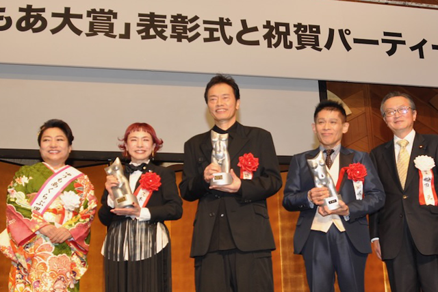 今年は初の単独ライブも大盛況を収め元気と笑いを届けてくださいました これからのさらなるご活躍を願いここにゆうもあ大賞を贈ります」